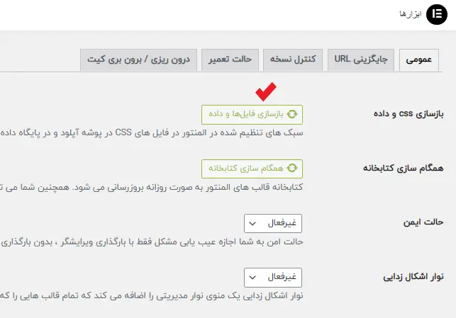- بازسازی فایل css المنتور
